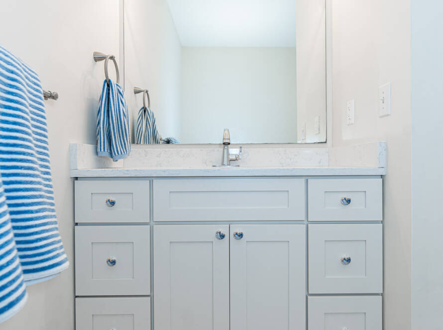 ClientKirsten & StevenCabinetGrey & White ShakerCounterLuminous QuartzWarm White Shaker Vanities, Havre de Grace