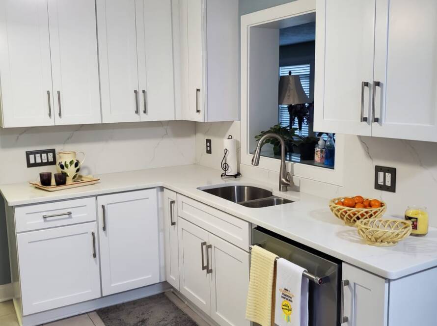 ClientNolan & IngridCabinetsWarm White ShakerCountertopFantasy BrownWarm White Shaker Island in Baltimore